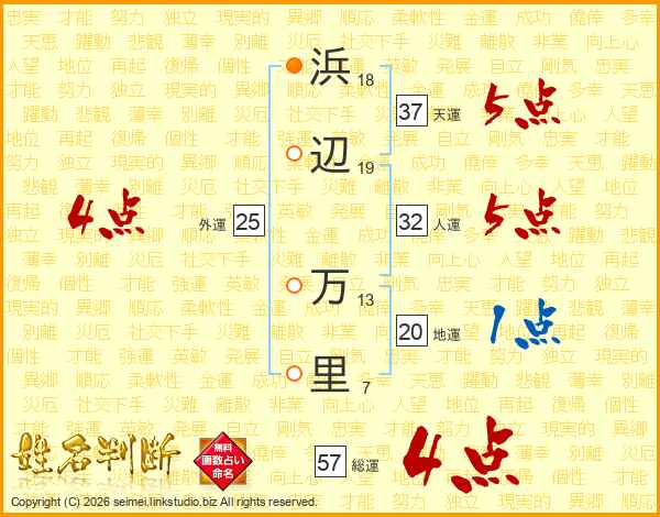 浜辺万里さんの総運は57画の4点!
