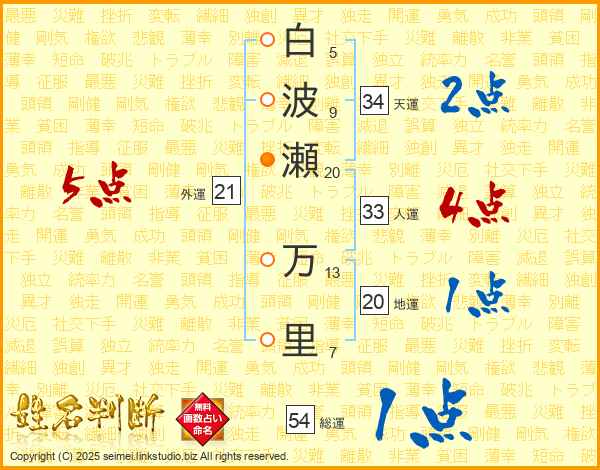 白波瀬万里さんの総運は54画の1点!