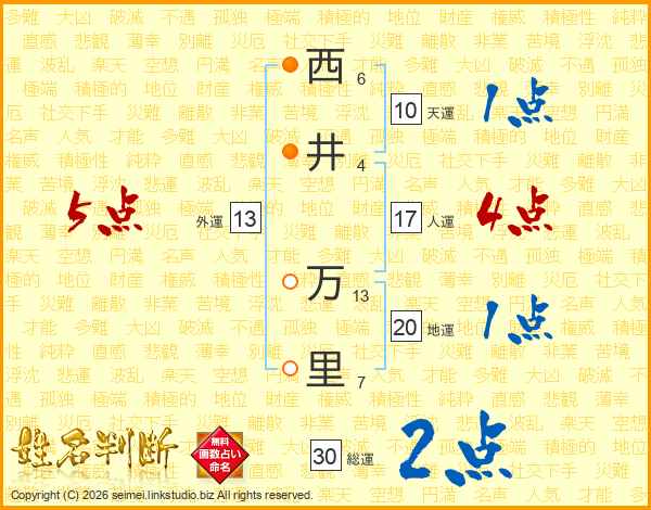 西井万里さんの人運は17画の4点!