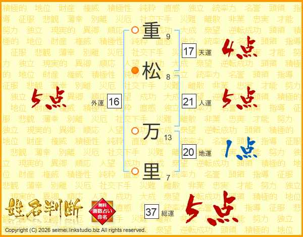 重松万里さんの総運は37画の5点!