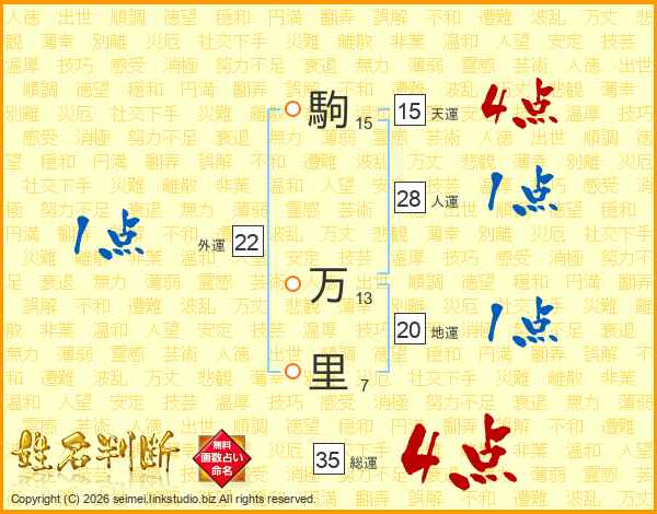 駒万里さんの総運は35画の4点!