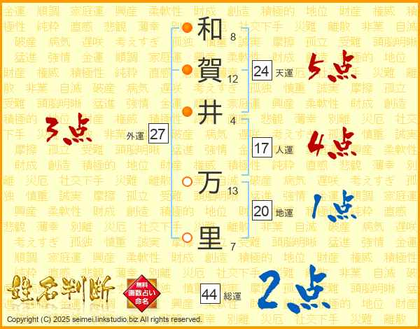 和(8画)賀(12画)井(4画) 万(13画)里(7画)