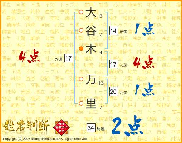 大(3画)谷(7画)木(4画) 万(13画)里(7画)