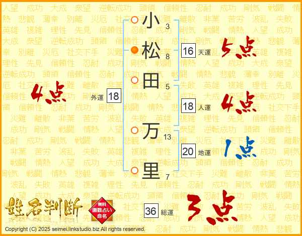 小松田万里さんの総運は36画の3点!