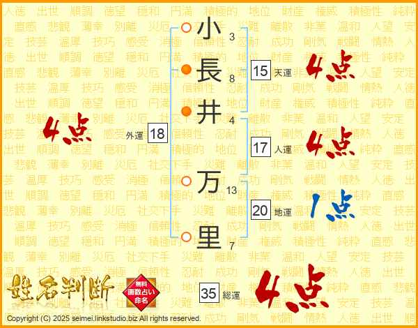 小(3画)長(8画)井(4画)  万(13画)里(7画)