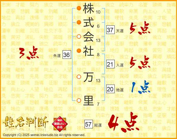 株(10画)式(6画)会(13画)社(8画) 万(13画)里(7画)