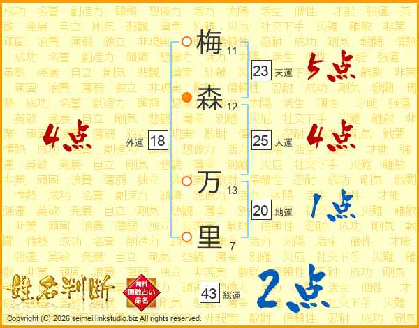 梅森万里さんの天運は23画の5点!