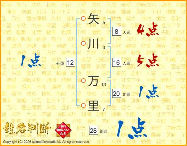 矢川万里さんの総運は28画の1点!