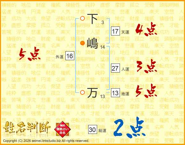 下嶋万さんの総運は30画の2点!