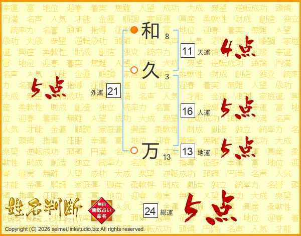和久万さんの総運は24画の5点!