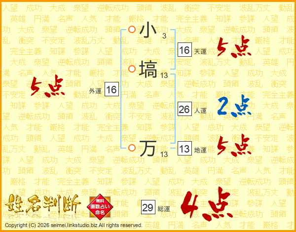 小塙万さんの総運は29画の4点!