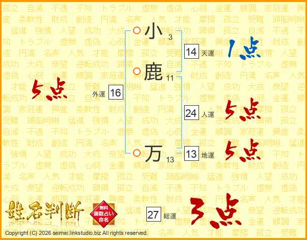 小鹿万さんの総運は27画の3点!