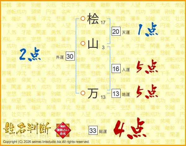 桧山万さんの総運は33画の4点!