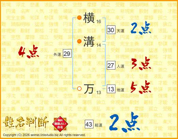 横溝万さんの総運は43画の2点!
