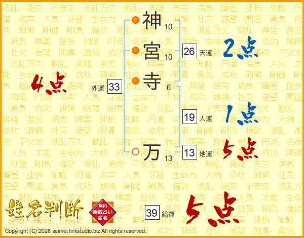 神宮寺万さんの総運は39画の5点!