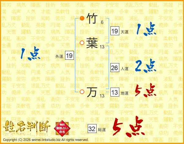 竹葉万さんの総運は32画の5点!
