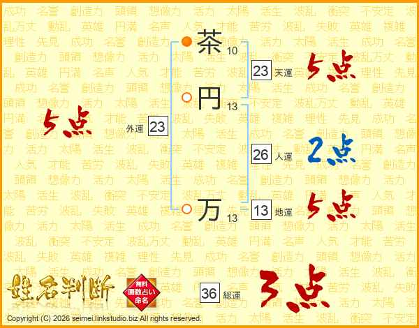茶円万さんの天運は23画の5点!