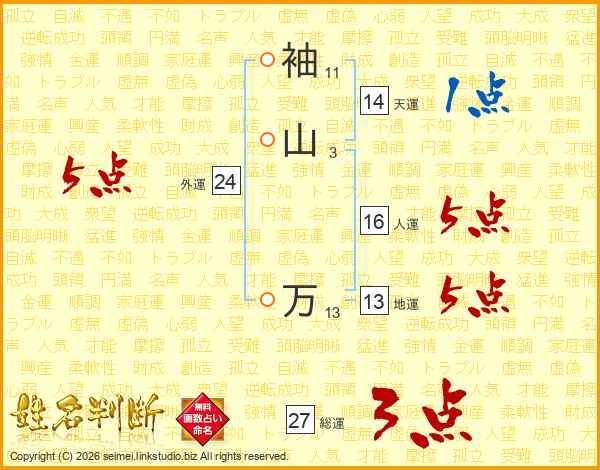 袖山万さんの天運は14画の1点!