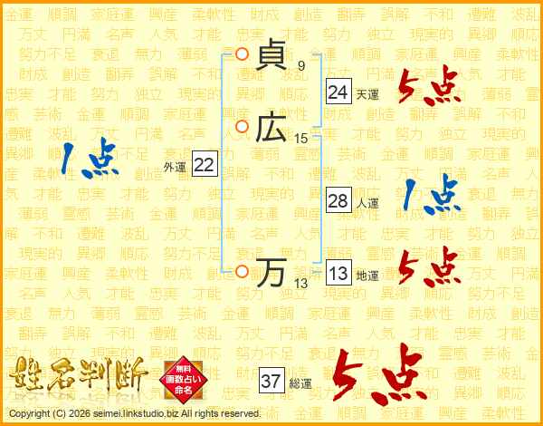 貞広万さんの総運は37画の5点!