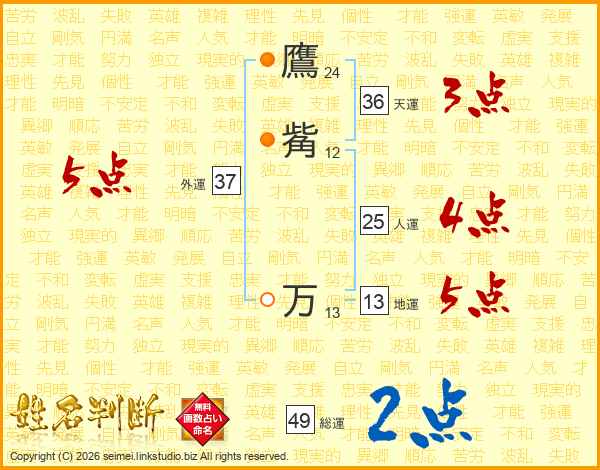 鷹觜万さんの総運は49画の2点!