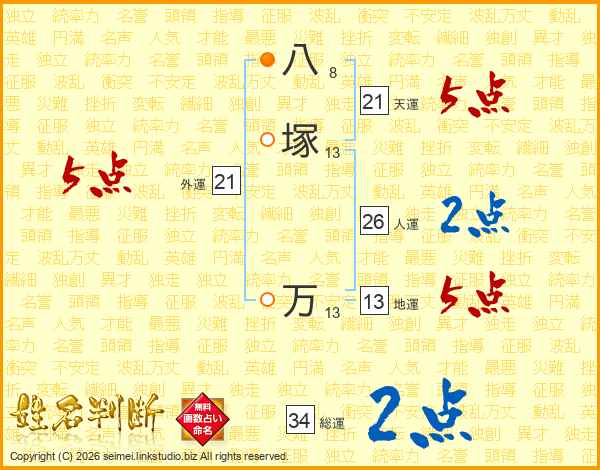 八塚万さんの人運は26画の2点