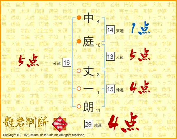 中庭丈一朗さんの総運は29画の4点!