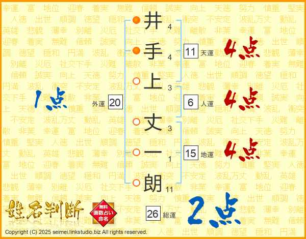 井手上丈一朗さんの総運は26画の2点!