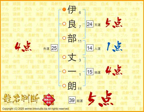 伊良部丈一朗さんの総運は39画の5点!