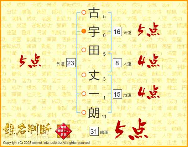 古宇田丈一朗さんの総運は31画の5点!