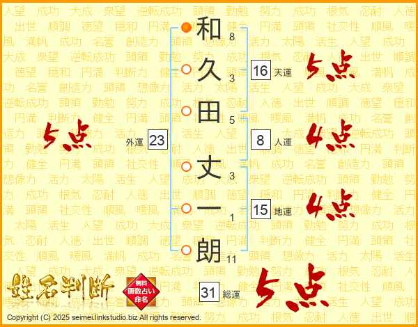 和(8画)久(3画)田(5画) 丈(3画)一(1画)朗(11画)