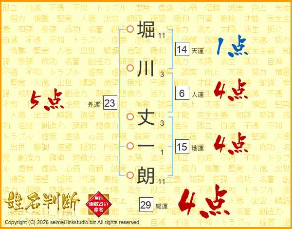 堀川丈一朗さんの総運は29画の4点!