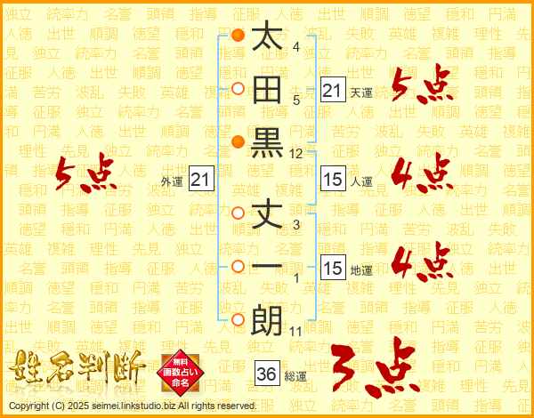 太田黒丈一朗さんの総運は36画の3点!
