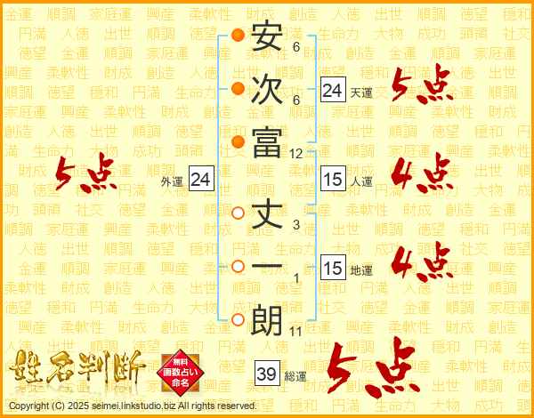安次富丈一朗さんの総運は39画の5点!