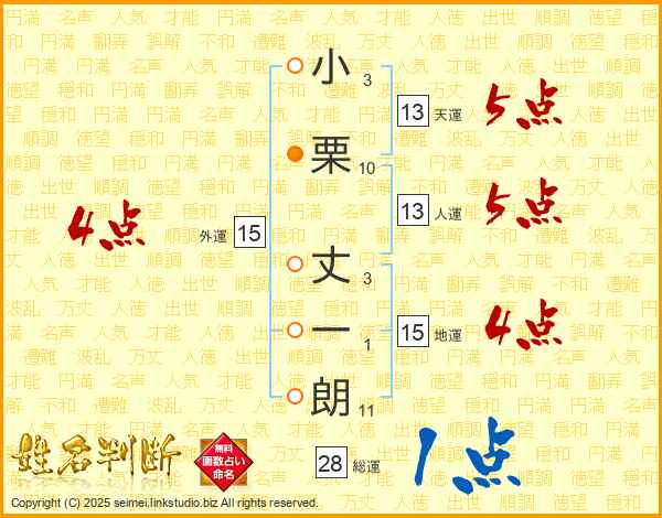 小(3画)栗(10画) 丈(3画)一(1画)朗(11画)