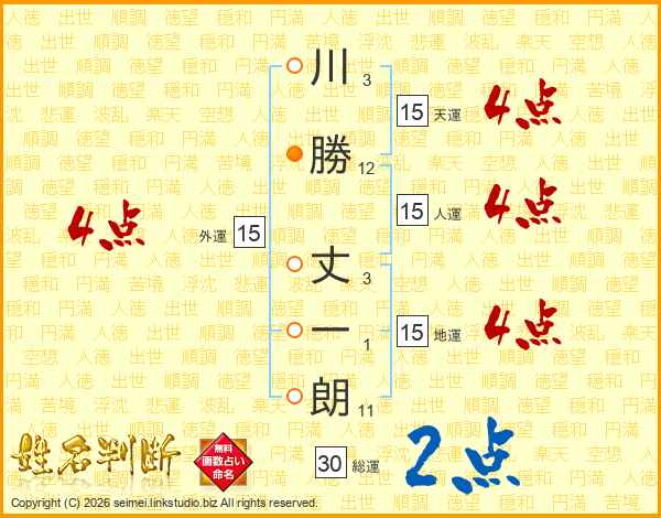 川勝丈一朗さんの天運は15画の4点!