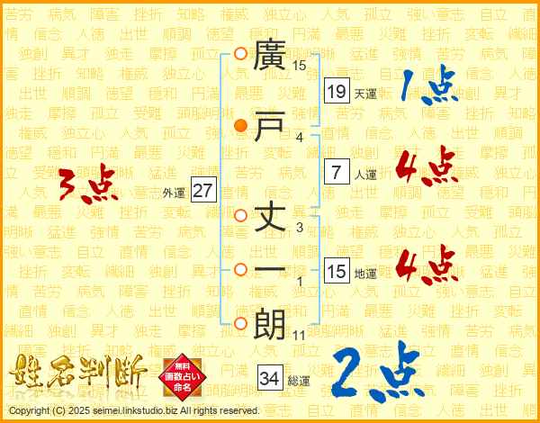 廣戸丈一朗さんの人運は7画の4点!