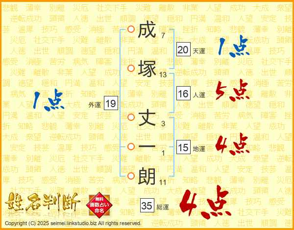 成塚丈一朗さんの総運は35画の4点!