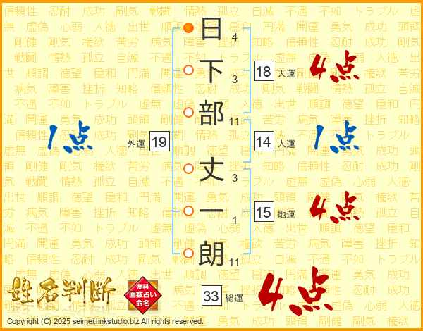 日下部丈一朗さんの総運は33画の4点!