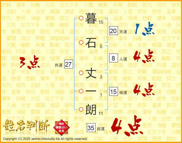 暮石丈一朗さんの総運は35画の4点!