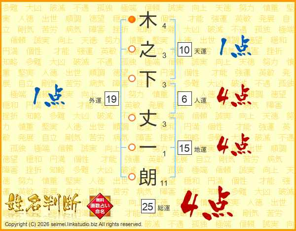木之下丈一朗さんの総運は25画の4点!