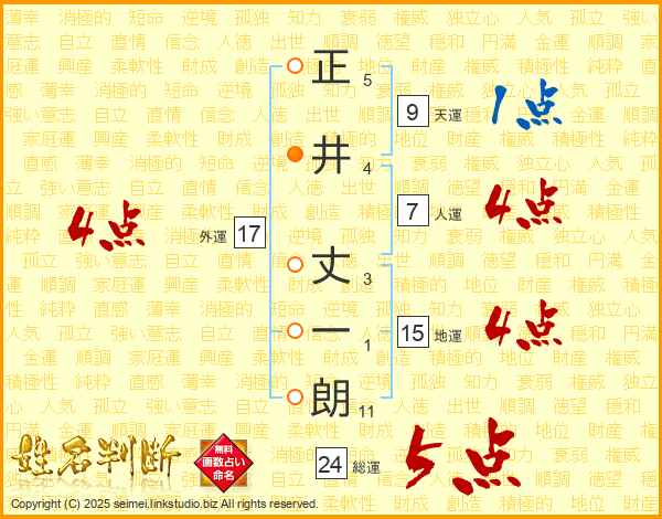 正(5画)井(4画) 丈(3画)一(1画)朗(11画)