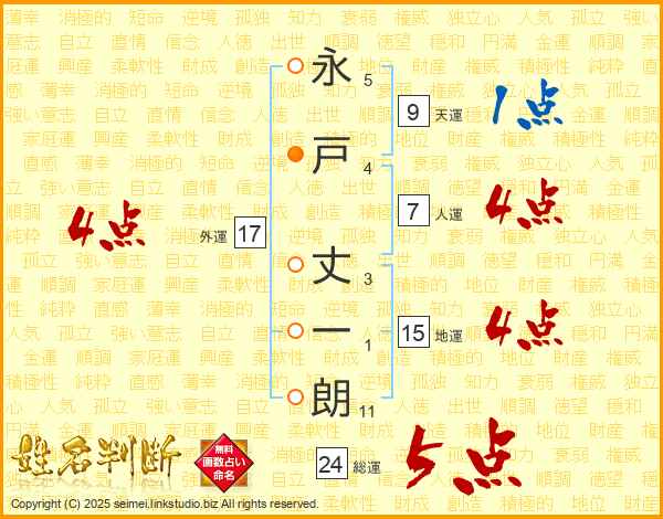 永(5画)戸(4画) 丈(3画)一(1画)朗(11画)