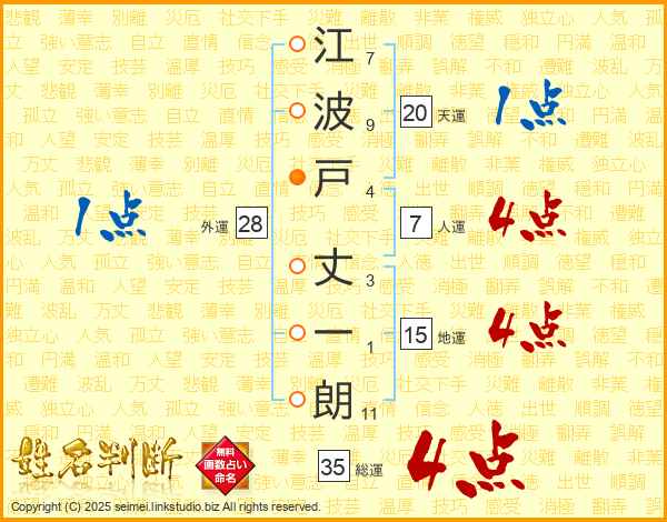 江波戸丈一朗さんの総運は35画の4点!