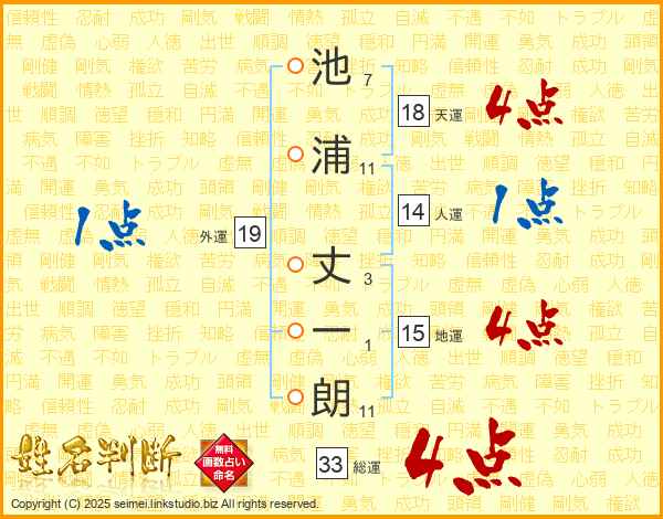 池(7画)浦(11画) 丈(3画)一(1画)朗(11画)