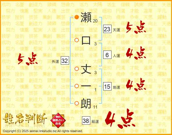 瀬口丈一朗さんの総運は38画の4点!