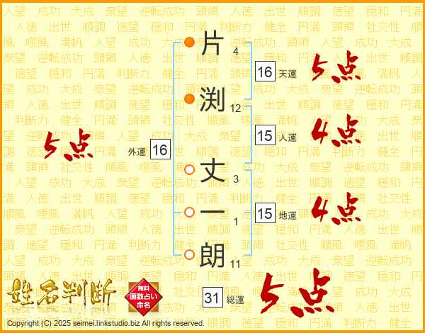 片渕丈一朗さんの総運は31画の5点!