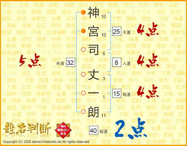 神宮司丈一朗さんの天運は25画の4点!