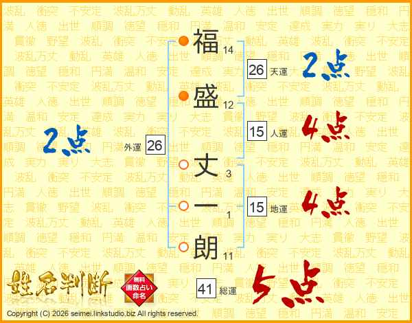 福盛丈一朗さんの外運は26画の2点!