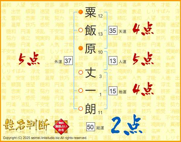 粟(12画)飯(13画)原(10画) 丈(3画)一(1画)朗(11画)