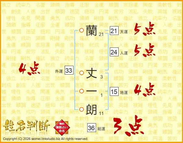 蘭丈一朗さんの外運は33画の4点!